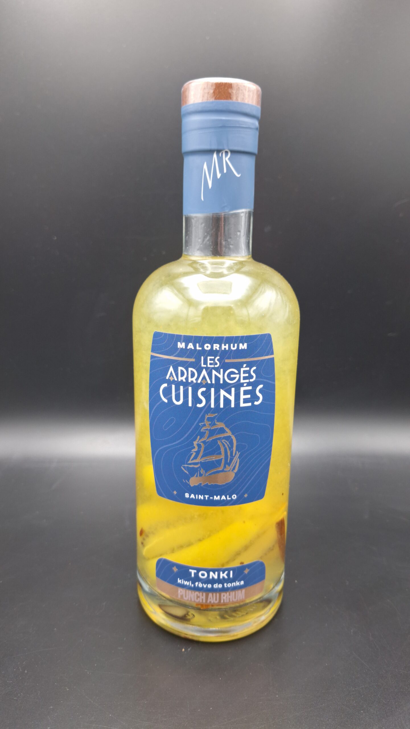 Tonki’ est un rhum arrangé onctueux et plein de caractère, conçu artisanalement à Saint‑Malo à partir d’un rhum agricole de Guadeloupe. Cette création marie des tranches de kiwi, des fèves de tonka et un soupçon de cannelle, équilibrés par une touche de miel. La texture est crémeuse et gourmande : onctueuse en bouche, elle soutient un équilibre harmonieux entre la fraîcheur acidulée du kiwi, la douceur épicée de la tonka et la chaleur de la cannelle.